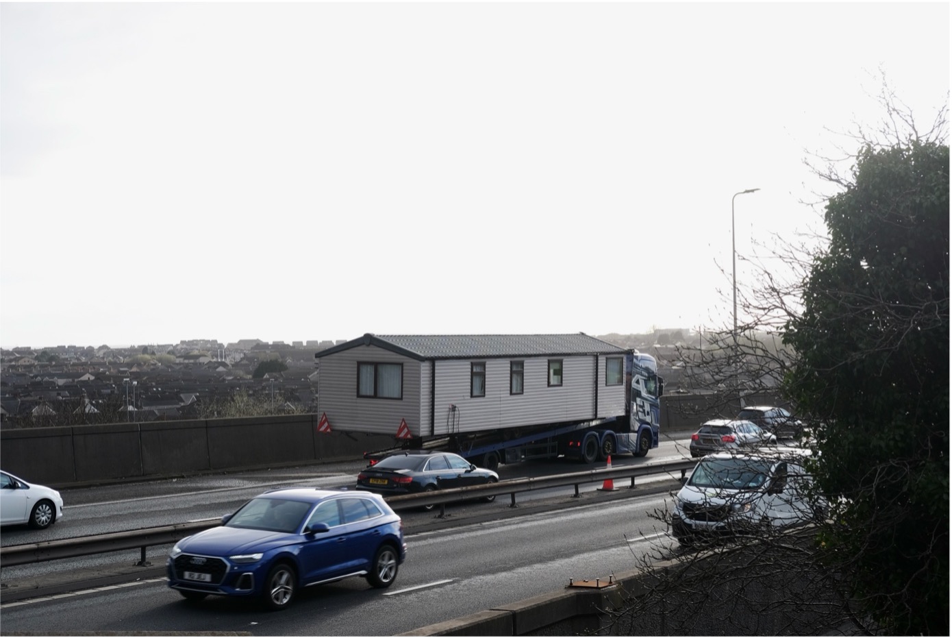 We gaze silently at the city in front of us for a while and, looking behind us, we see that dark clouds have gathered. Standing close to the motorway, we suddenly see an entire house pass by on a trailer. “Oh, that's my nanny’s house. Getting stolen with my grandmother in it,” Dylan comments sarcastically, the scenario feeling all too fitting. As he walks us back to the station he says: “Although many people are moving away. I’ll stay. Port Talbot is my home.”