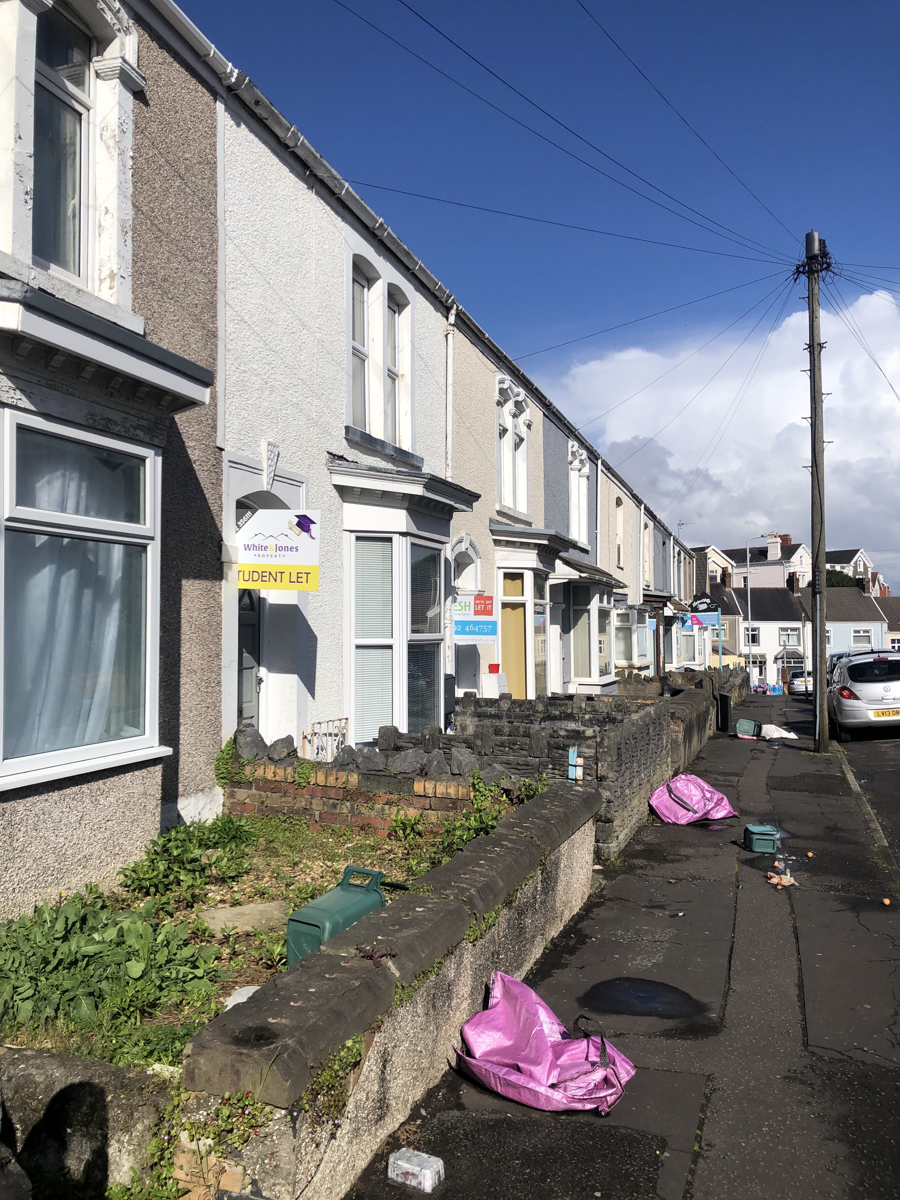 Figure 2: Street in Brynmill with terraced houses to let. Photo by author.