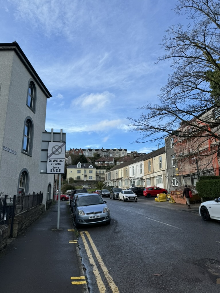 My walk began at the picturesque University of Swansea Singleton Campus. I strolled through the beautifully kept park, where lush green bushes and trees framed the paths, birds chirped, and the first spring flowers blossomed. Exiting through a small gate, I found myself on a street curving into the Brynmill neighbourhood. Narrow terraced houses lined the streets, their small front lawns cluttered with trash, and signs indicating they were available to let for students. The southern part of Brynmill exhibited a distinct pattern, with the first few streets looking identical. These were filled with small cars, and busy students exited their homes with iPads, laptops, and water bottles. My presence in the neighbourhood didn’t seem out of the ordinary; people I encountered smiled at me and, in a typically Welsh manner, started conversations. The friendly interactions made it easy to get a feel for the local atmosphere.