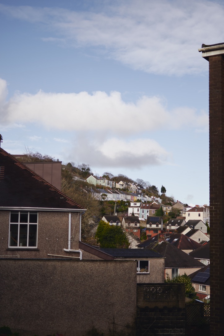 While talking to inhabitants of Brynmill, I noticed another recurring theme – one that appeared in every conversation there: The people I spoke to proudly emphasised how their neighbourhood differs from others in Swansea, especially Mount Pleasant. Distinguishing themselves from Mount Pleasant seemed to be a significant part of their local identity. Topographical descriptions such as “up and down,” “wedged on the hill,” and “looking down to the base” evoke a sense of spatial hierarchy and social stratification between the neighbourhoods. These terms suggest not only physical elevation but also perceived class distinctions – with Mount Pleasant in the role as the “higher-up”, privileged area – which was observed somewhat sceptically from the viewpoint of Brynmill. This perceived disparity was evident, for example, in a conversation with a lady at a local bakery shop, which has been run by her family for generations. She proudly mentioned that many residents of Mount Pleasant come down to purchase her Welsh baked goods. This patronage seemed to confer a sense of honour and validation, highlighting the social prestige associated with this approval. These pastries were separated by a block of wood from the international bakery goods she offered. “These are the ones for the residents, the true students,” she said, pointing to the Welsh pastries with a proud look on her face. “The others are for the picky internationals – the English,” she added, pointing to the other side of the wooden block. When I raised my camera to take a picture, she gave me a stern gaze and shook her head. Respecting her wishes, I left the bakery, jotted down my notes, and checked my phone’s map to find the quickest route to Mount Pleasant. Determined to make the steep uphill trek, I was soon met by a hailstorm and rain, which gave me a moment to pause and reflect on what I had experienced so far.