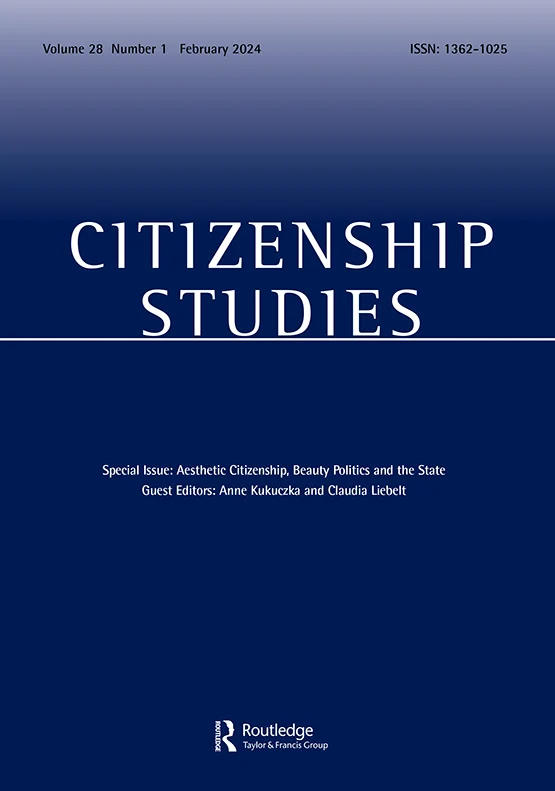 In this special issue, we seek to (re-)analyse citizenship and (bio-)political operations in relation to embodied aesthetics by highlighting how embodied aesthetics constitute a central dimension of state-subject relations. We propose ‘aesthetic citizenship’ to describe embodied aesthetics as a biopolitical field of self-making and a site of disciplining, educating and manufacturing ‘proper’ citizens through visual and sometimes surgical technologies of surveillance and recognition. Collectively, the articles analyse how norms of bodily appearance are related to and shaped by state-led processes of citizenship, first in relation to ideas of nationhood and representation, and secondly in relation to what could be termed the biopolitics of beauty and aesthetic governance. Foregrounding affective, multisensorial and embodied aesthetics, this special issue probes a crucial, yet often overlooked lens with which to zoom in on the dynamics between state images and practices in their interrelatedness and as they are embedded in everyday life.