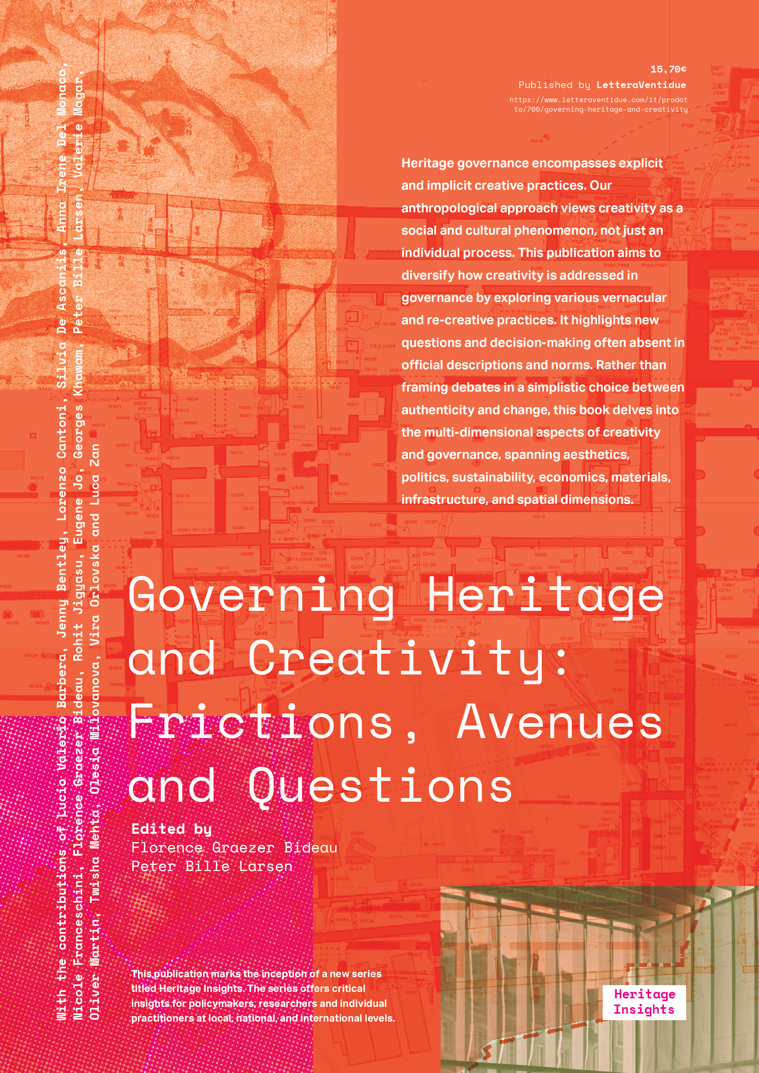 Heritage governance encompasses explicit and implicit creative practices. Our anthropological approach views creativity as a social and cultural phenomenon, not just an individual process. This publication aims to diversify how creativity is addressed in governance by exploring various vernacular and re-creative practices. It highlights new questions and decision-making often absent in official descriptions and norms. Rather than framing debates in a simplistic choice between authenticity and change, this book deves into the multi-dimensional aspects of creativity and governance, spanning aesthetics, politics, sustainability, economics, materials, infrastructure, and spatial dimensions.