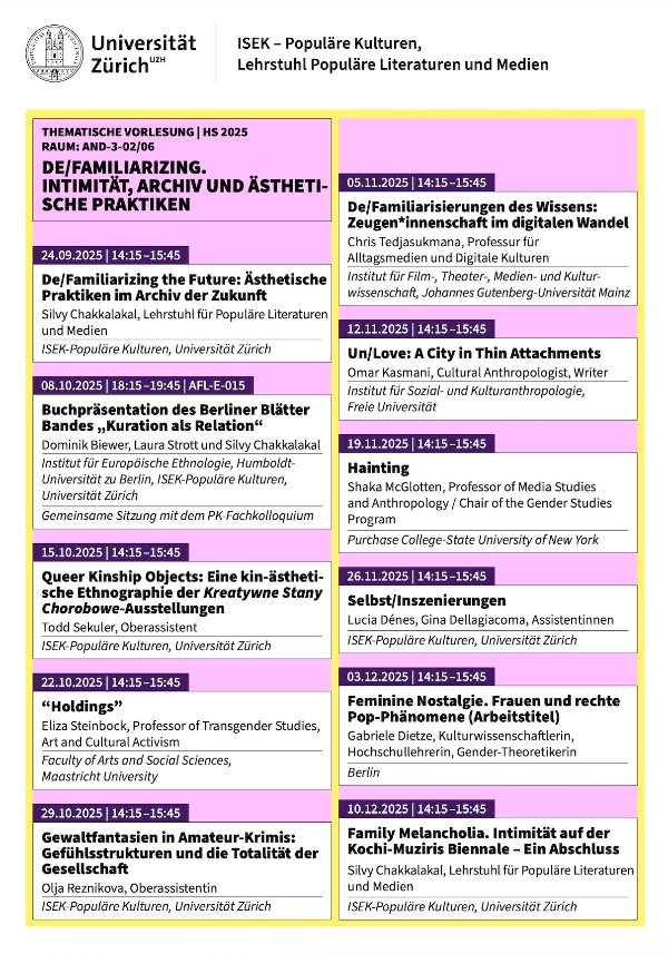 Gemeinsame Veranstaltung mit der Thematischen Vorlesung De/Familiarizing Intimität, Archiv und ästhetische Praktiken